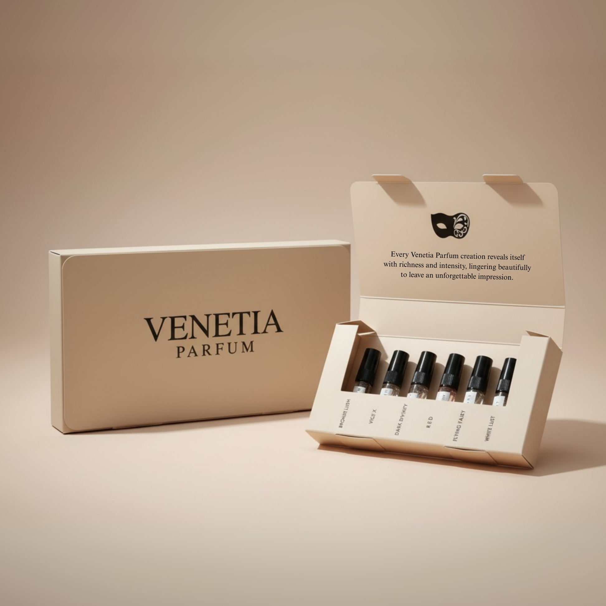 Inspired by the Golden Age of Venice, where the mask was chosen to match the moment. Masterfully blended in the UAE, our scents are designed to define your presence. Wear the mask that suits your occasion.