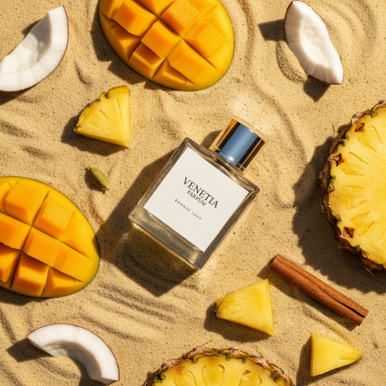 Bronze Lush captures the essence of a tropical getaway with its vibrant blend of coconut, pineapple, mango, cardamom, and sea notes. This expertly crafted fragrance delivers a fresh, sunny mood, evoking warmth and energy. Ideal for warm days or whenever you seek a burst of sunshine, its balanced composition combines sweet and spicy elements with a subtle marine breeze, creating a sophisticated and invigorating scent experience.